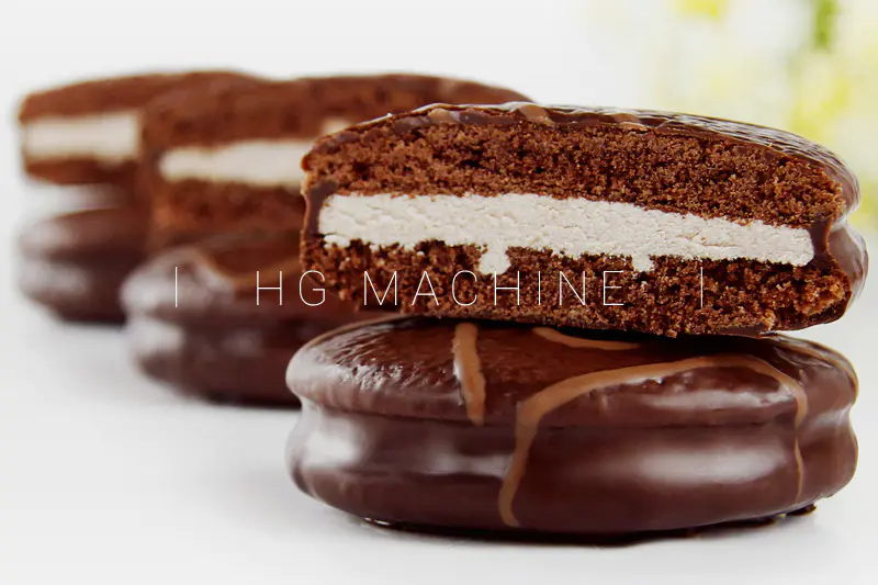 مكونات خط إنتاج فطائر الشوكولاتة الرئيسية: خلاط العجينة السائلة، آلة تغذية الأوراق، آلة صب وتشكيل العجين، فرن نفق الخبز، ناقل التبريد، آلة إعادة تدوير الأوراق، آلة التراص العمودي، آلة تقليب الكعك، آلة التراص الأفقي، آلة تجميع الطبقات (لحشو الكريمة) وآلة التبريد النهائي.