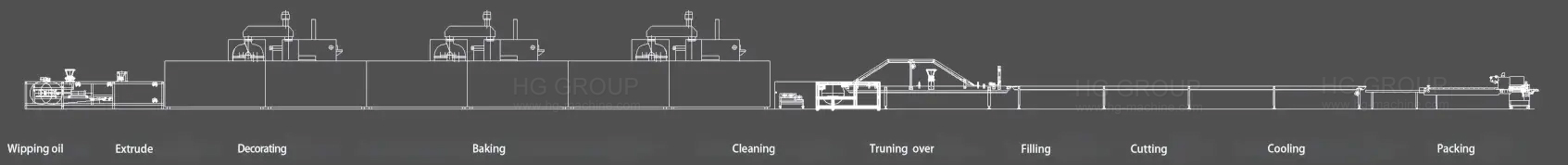 تُعد منتجات سلسلة كوكيز وايت لافر شهيرة جدًا في اليابان بسبب شكلها المميز وطعمها المقسّح. والآن، تقدم مجموعة HG تقنية التصنيع اليابانية الناضجة وخبرة تصنيع متقدمة إلى آلاتنا. علاوة على ذلك، قامت HG بتحسين هذه الآلات وفقًا لمتطلبات العملاء المحليين، ثم قامت بتصميم خط إنتاج كوكيز رغيف رقيق بالكامل تلقائيًا. يكرس فريقنا المحترف جهده لتحسين الترتيب العام: بدءًا من تحميل المواد، مرورًا بالتشكيل، والخبز، ووصولًا إلى الحشو. يتم تنفيذ العملية بأكملها بشكل أوتوماتيكي بالكامل مع تشغيل مستقر. كما نقدم خدمة عالية الجودة لضمان إنتاج صحي وآمن.